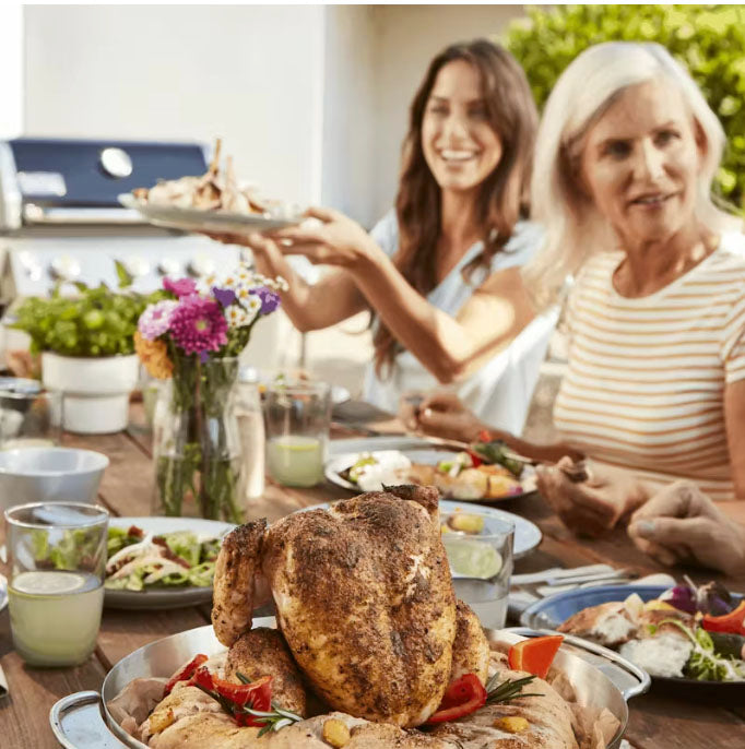 Not your run-of-the-mill poultry roaster. The versatile, 2-in-1 design of the Gourmet BBQ System Poultry Roaster empowers you to barbecue your bird and sides at the same time. Prepare a crispy yet moist chicken at the centre of your barbecue, while vegetables cook around the rim. Fill the centre liquid container to make a succulent roast chicken, or remove it to use the entire pan for cooking vegetables or sides.